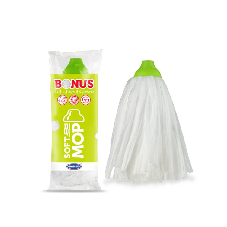 Puha, mikroszálas felmosófej hatékony nedvszívással! A BONUS SoftMop ideális gyors, csíkmentes tisztításhoz minden padlótípuson – 140 g-os kivitelben. - Gyártó: Bonus