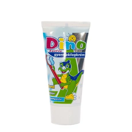 DINO gyerek fogkrém – 50 ml, gyümölcsös íz, fluoriddal. Kíméletes a tejfogakhoz, vidám és szerethető választás gyermekeknek.