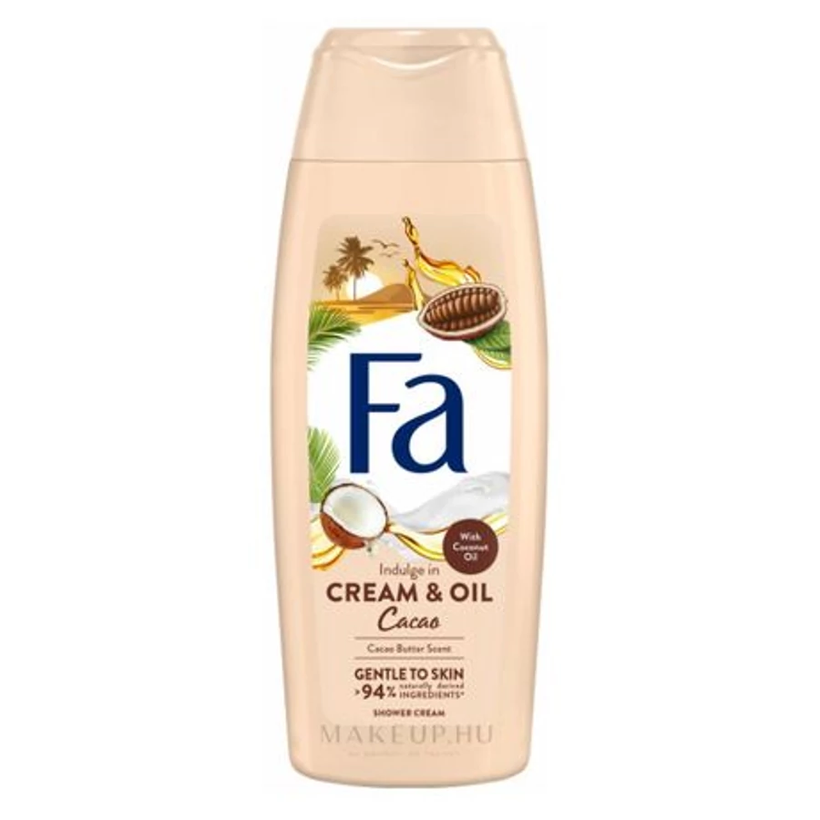 FA Cream & Oil Cacao Butter tusfürdő – 250 ml, kakaóvajjal és hidratáló olajokkal. Tápláló, krémes formula édes illattal, száraz bőrre is.