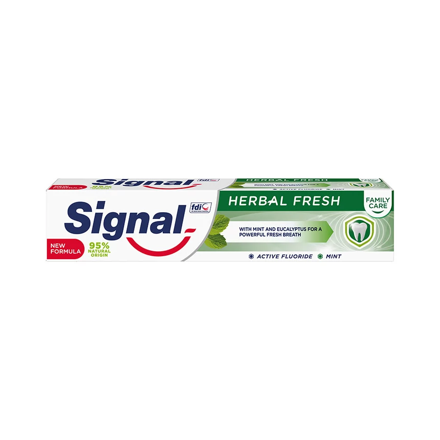 A Signal Family Herbal Fresh fogkrém a természet erejével támogatja a mindennapi szájápolást.